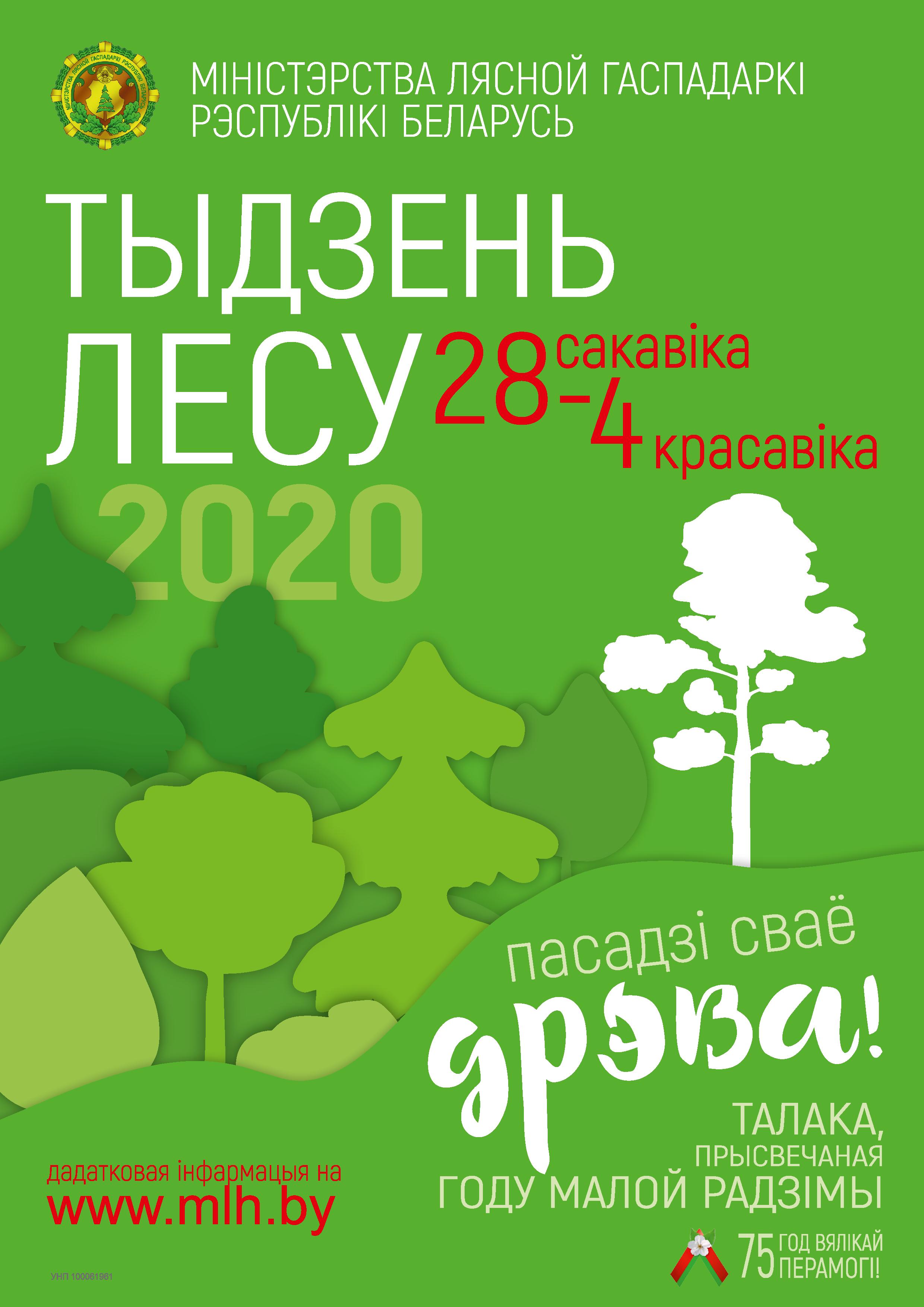 У мэтах захавання і прымнажэння лясоў рэспублікі, прыцягнення ўвагі грамадскасці да вырашэння агульнадзяржаўных задач у сферы ўзмацнення экалагічнай, эканамічнай і сацыяльнай ролі лясоў, у перыяд з 28 сакавіка па 4 красавіка 2020 у Бешанковіцкім лясгасе пройдзе добраахвотная акцыя "Тыдзень лесу - 2020", прысвечаная Году малой радзімы і святкаванню 75-годдзя Перамогі ў Вялікай Айчыннай вайне 1941-1945 гадоў.