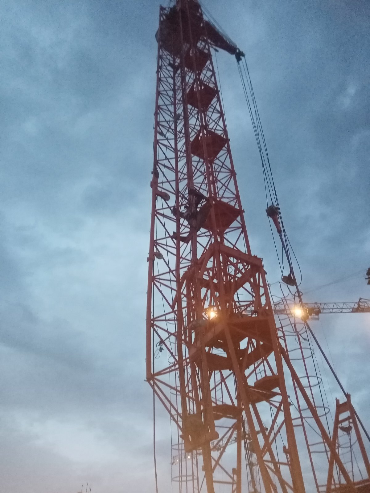 25.05.2023 при перемещении конуса (бадьи) с бетоном для заливки колонн фундамента здания произошел разрыв каната оттяжки стрелы башенного крана с последующим ее падением (г.Гродно).