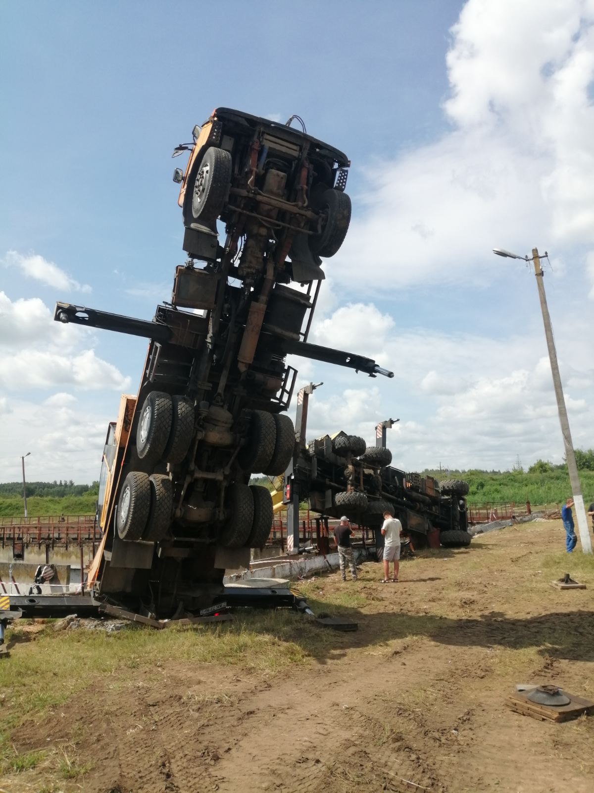 Причиной опрокидывания стало разрушение сварного соединения поперечной пластины узла крепления гидроцилиндра выдвижения правой передней опоры. Сварное соединение имело недопустимый дефект – несплавление (отсутствие соединения между металлом сварного шва