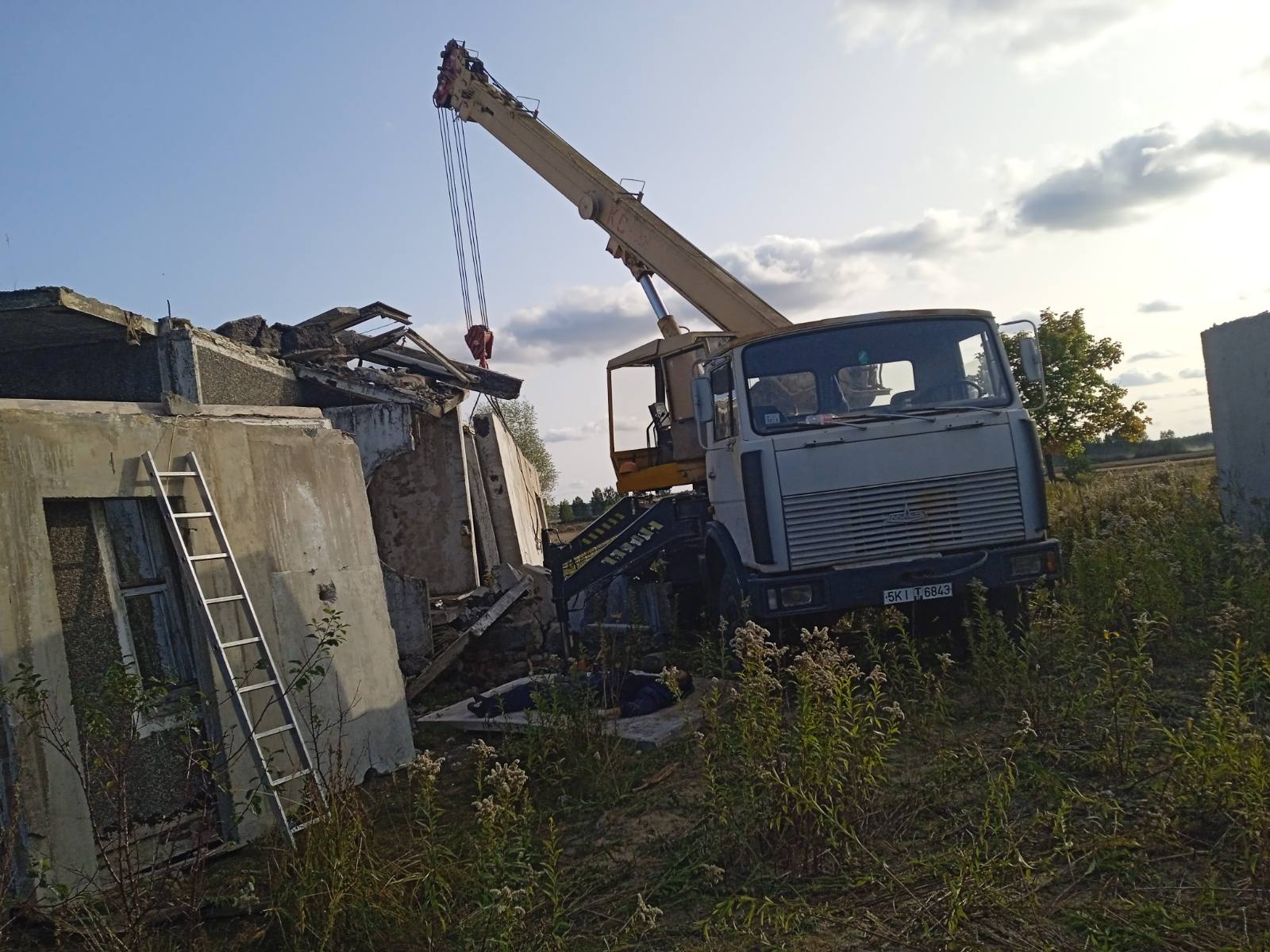 02.10.2023 при выполнении работ с применением автомобильного крана по сносу блокированного жилого дома произошел несчастный случай со смертельным исходом (Калинковичский р-н). При демонтаже бетонной плиты перекрытия второго этажа была нарушена устойчивость соседней стеновой плиты, стоявшей вертикально. Потерпевший, пытаясь избежать падения на него плиты, не удержался и упал на землю с высоты примерно 3 метра.