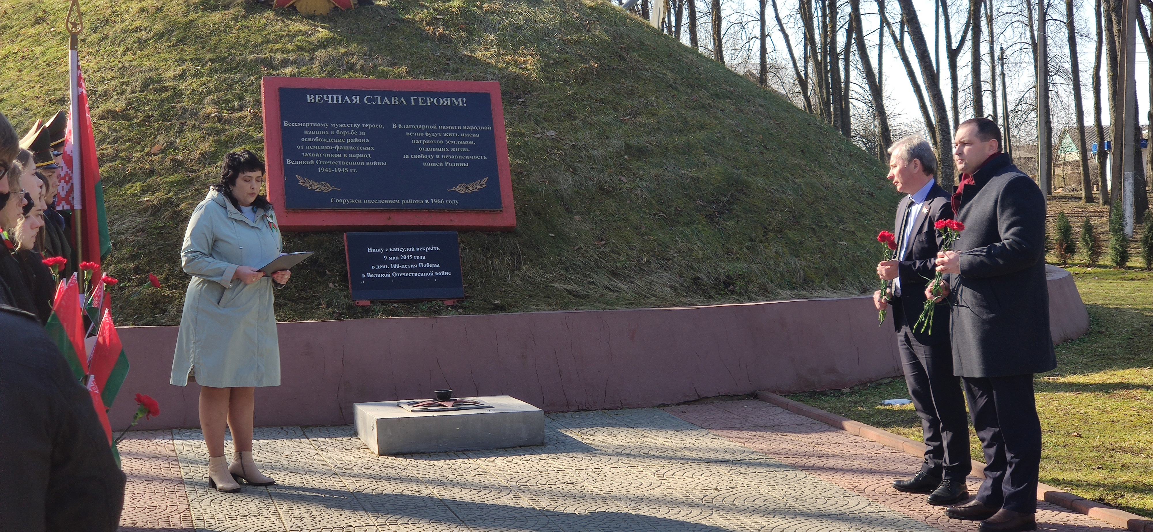 Виктор Владимирович Азаренок и Александр Иванович Ерашов, заместитель председателя райисполкома, приняли участие в торжественном мероприятии, посвященном Дню памяти жертв Хатынской трагедии.