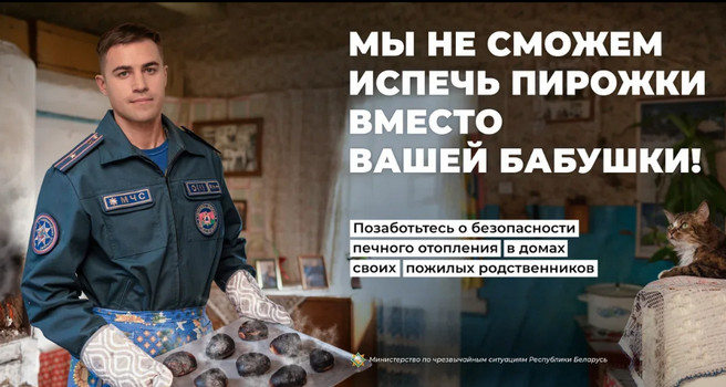 В ее основе лежат очень реалистичные образы, которые моментально переносят целевую аудиторию в атмосферу отдыха у бабушки с дедушкой за городом – теплые носки, парное молоко, румяные пирожки. Но в этом антураже есть и «ложка дегтя» – демонстрация примеров нарушения правил безопасности, которые в домах пенсионеров чаще всего приводят к непоправимому. Кажется, на этом концепция кампании исчерпана – показать, что ценно и что требует внимания. Но не все так просто. В числе главных героев кампании мы не видим самих пенсионеров – на первом плане в ней находится работник МЧС. Именно в этом и кроется главная идея: за, казалось бы, некоторой комичностью картинки – спасатель, заменивший в кадре предполагаемую всеми старушку, – прячется очень важный посыл, который и раскрывается в емких слоганах. «Мы не сможем угостить Вас парным молоком вместо Вашей бабушки!», «Мы не сможем испечь пирожки вместо Вашей бабушки!», «Мы не сможем связать носки вместо Вашей бабушки!» – эти фразы в полной мере показывают, что стоит на кону, если продолжить безразлично относиться к состоянию безопасности в домах близких пожилого возраста. Именно такой тандем – емкие и цепляющие слоганы и нестандартные образы – является наиболее действенным и эффективным способом «задержать» внимание целевой аудитории на поднятой проблеме и, апеллируя к теплым воспоминаниям и чувствам, призвать ее действовать, опираясь на конкретные примеры.
