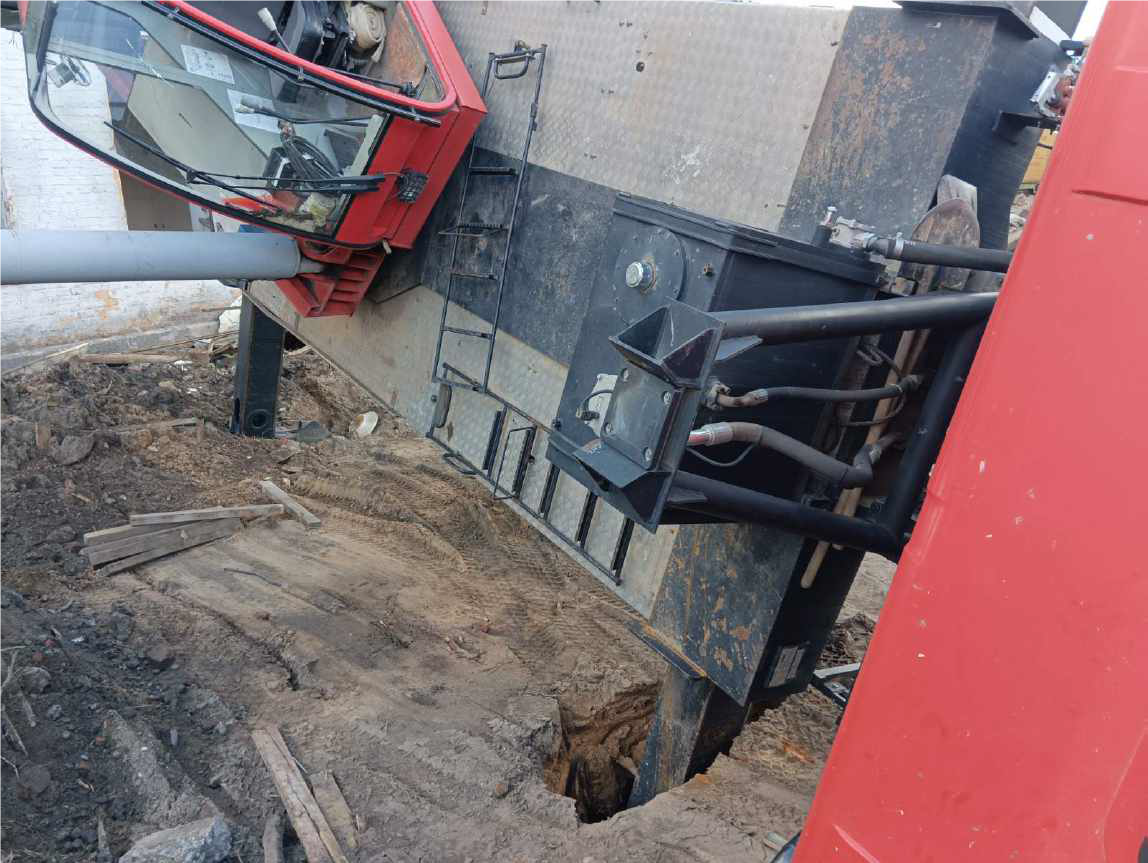 Причиной потери устойчивости (опрокидывание) крана с последующим повреждением металлоконструкций стрелы, стал провал грунта под передней правой опорой крана. В месте установки грузоподъемного крана в соответствии с проектом производства работ, проектом организации строительства линии подземных коммуникаций, а так же иные подземные сооружения не обозначены.
