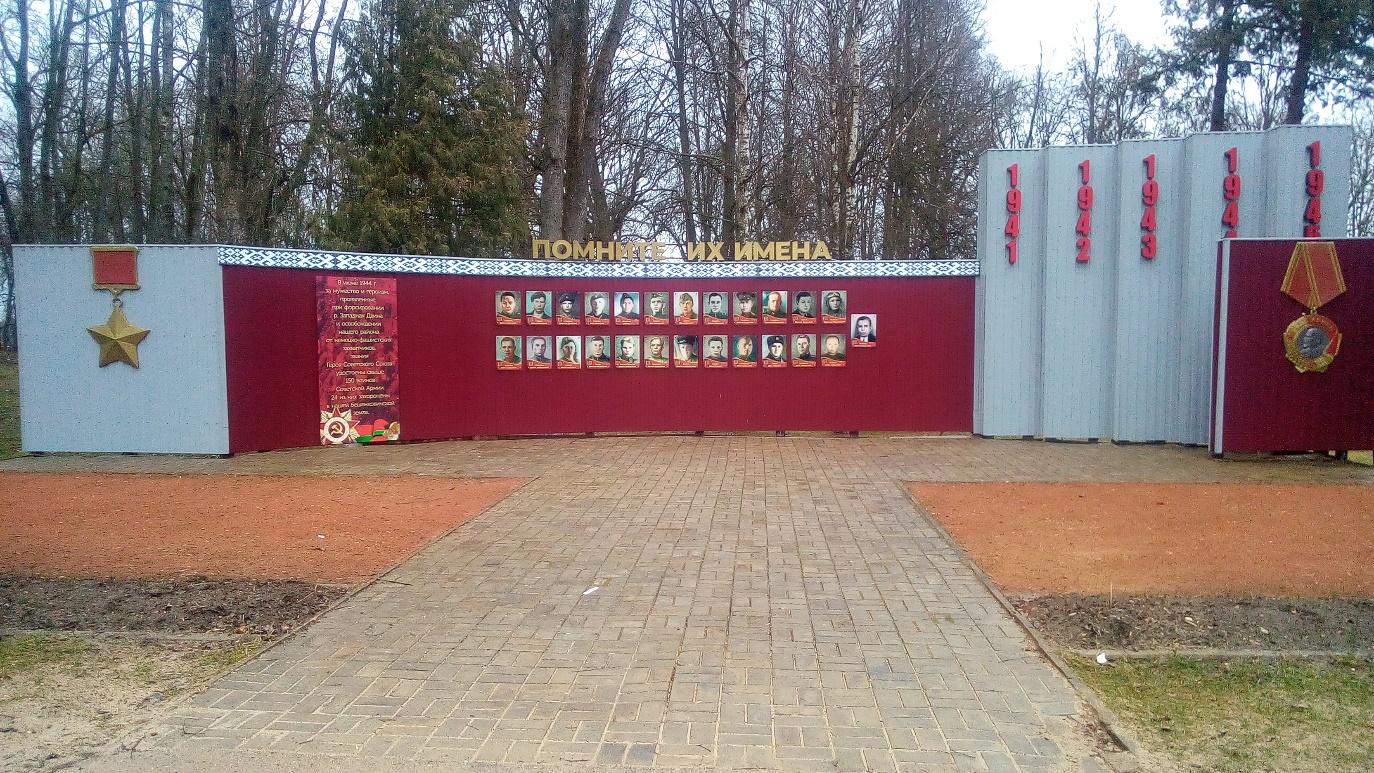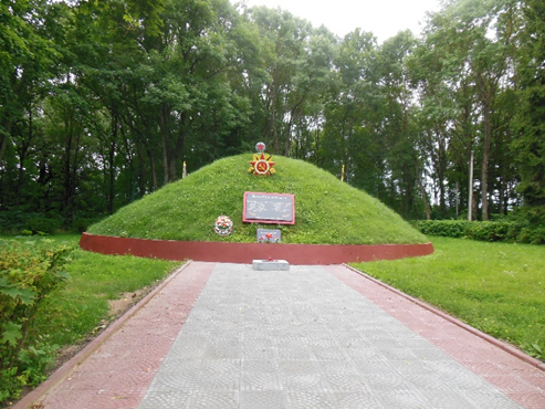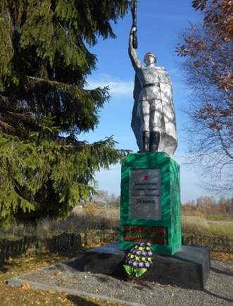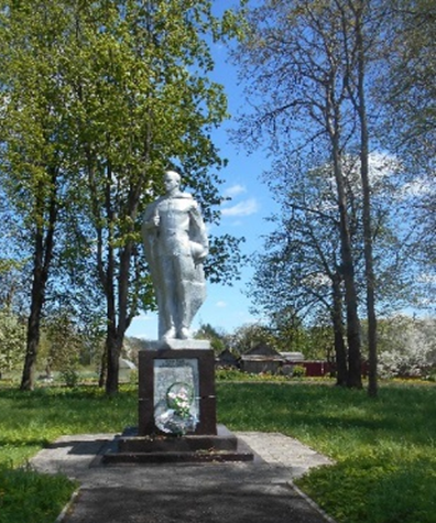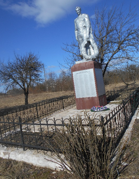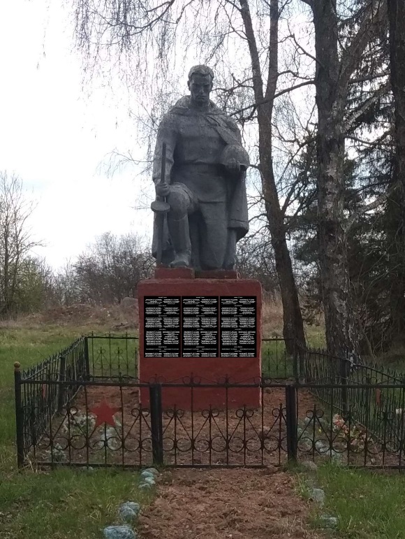 Поставлена на государственный учет в 2004 г. Памятник установлен в 1956 г., заменен в 1964 г. Памятник в виде ж-бетонной скульптурной группы (воин со знаменем и коленопреклонённый воин с венком) высотой 2,5 м. Установлен на кирпичном постаменте высотой 3 м. На постаменте 2 мемориальные доски с фамилиями погибших и доска с надписью: «Вечная память и слава верным сынам нашей Родины». На мемориальных плитах нанесены фамилии захороненных. На двух бетонных плитах мемориальные доски с фамилиями 4 Героев Советского Союза: Луговского Николая Петровича, Спольника Григория Ивановича, Хараборкина Георгия Филимоновича, Шварцмана Моисея Фроимовича. Ограда бетонная.