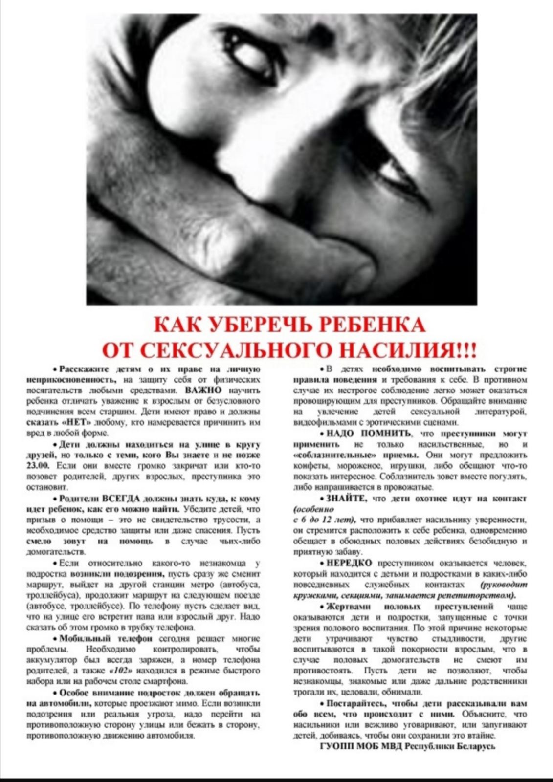 РЕГИОНАЛЬНАЯ КАРТА ПОМОЩИ несовершеннолетним, пострадавшим от сексуального насилия или эксплуатации Бешенковичского района